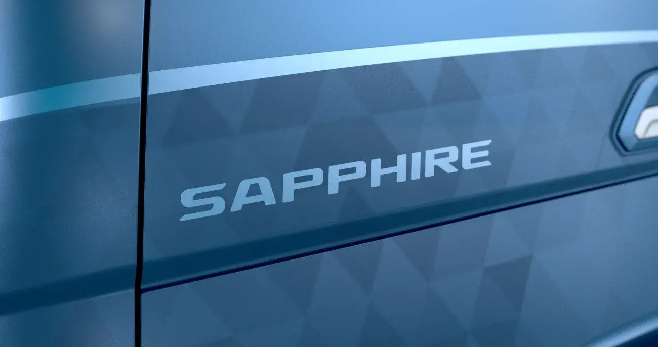 Ook het uiterlijk mag gezien worden. Deze Sapphire Edition is voorzien van Alcoa aluminium velgen, unieke striping en stijlvolle extra’s vanuit onze eigen spuiterij – waaronder een bumperspoiler, hoekschildjes en een meegespoten zonnekap.